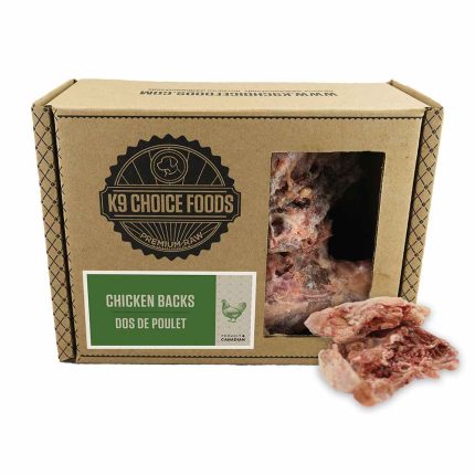 Whole skinless chicken backs, individually frozen for one at a time feeding.