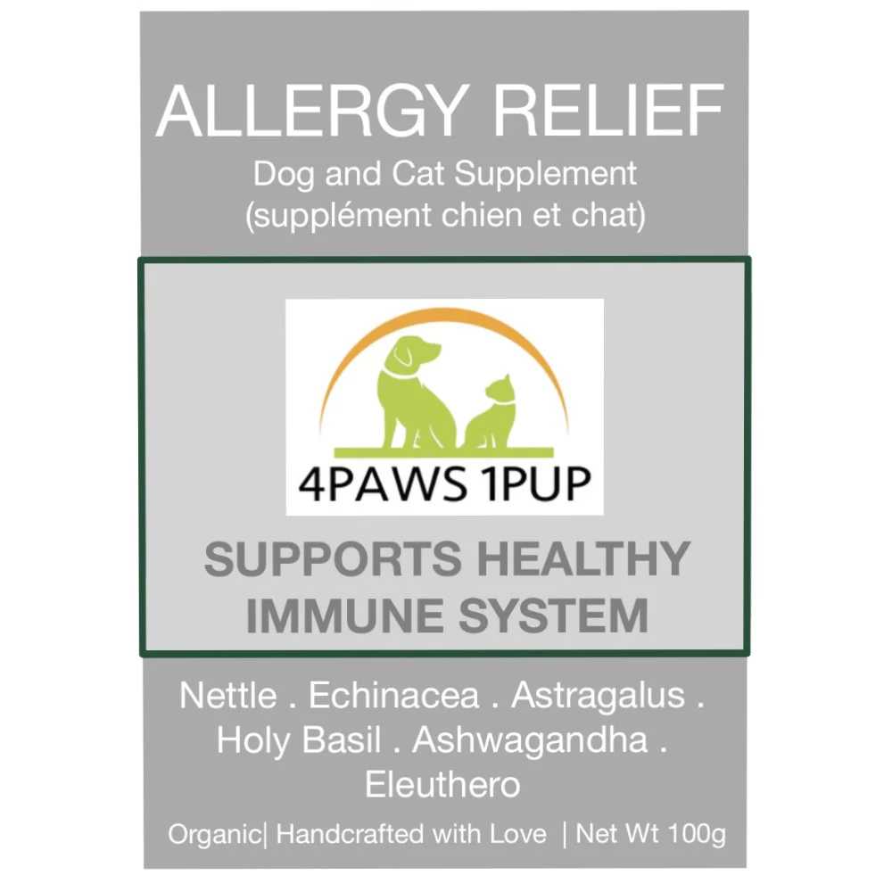Could your fur friend be suffering from allergies or needs help to boost their immune system for a healthy response to allergies? This organic Allergy Relief blend has been formulated with natural herbs known to combat seasonal allergies while boosting their immune system.