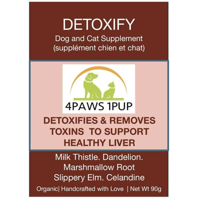 A proprietary organic detox blend to support the elimination and removal of toxins for our fur friends. There are many sources of toxins from environmental to processed pet foods that over time develop into an overloaded and overworked liver. Detoxify has a blend of known, organic herbs to assist optimal liver function and cleanse the liver and surrounding organs to stimulate the regeneration of liver cells and improve digestion.
