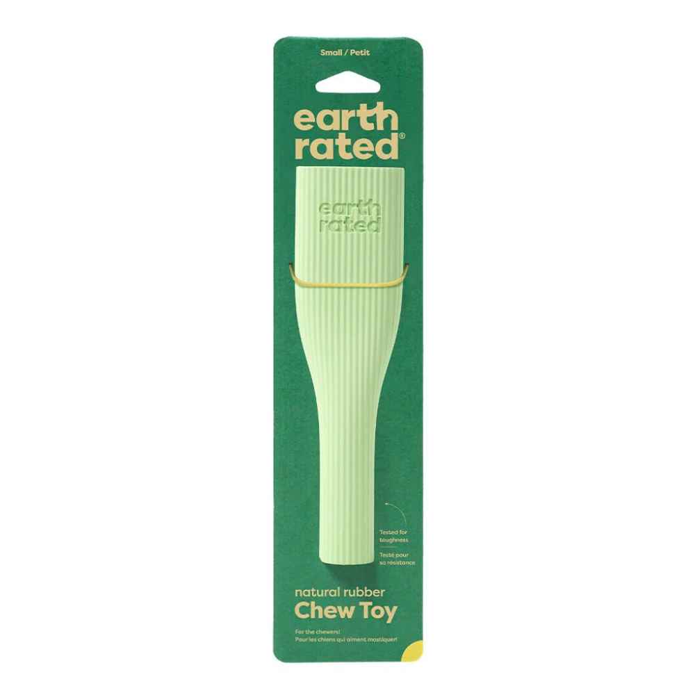 Earth Rated Dog Enrichment Toy is designed to be filled with either dry or wet treats to keep your pup occupied. The ribbed ergonomic designed allows dogs to grip and hold it like a bone.