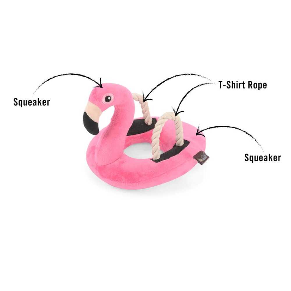 Flamingo Float Plush Toy will have your dogs dreaming of summer pool days with this floaty inspired plush.Two squeakers and a rope to keep your pup busy.