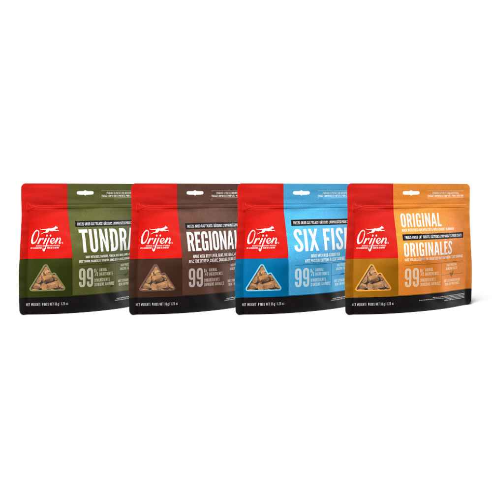 Orijen Freeze-Dried Cat Treats are packed with animal protein, made with 99% animal ingredients. Freeze-dried to lock in their rich nutrients and taste.
