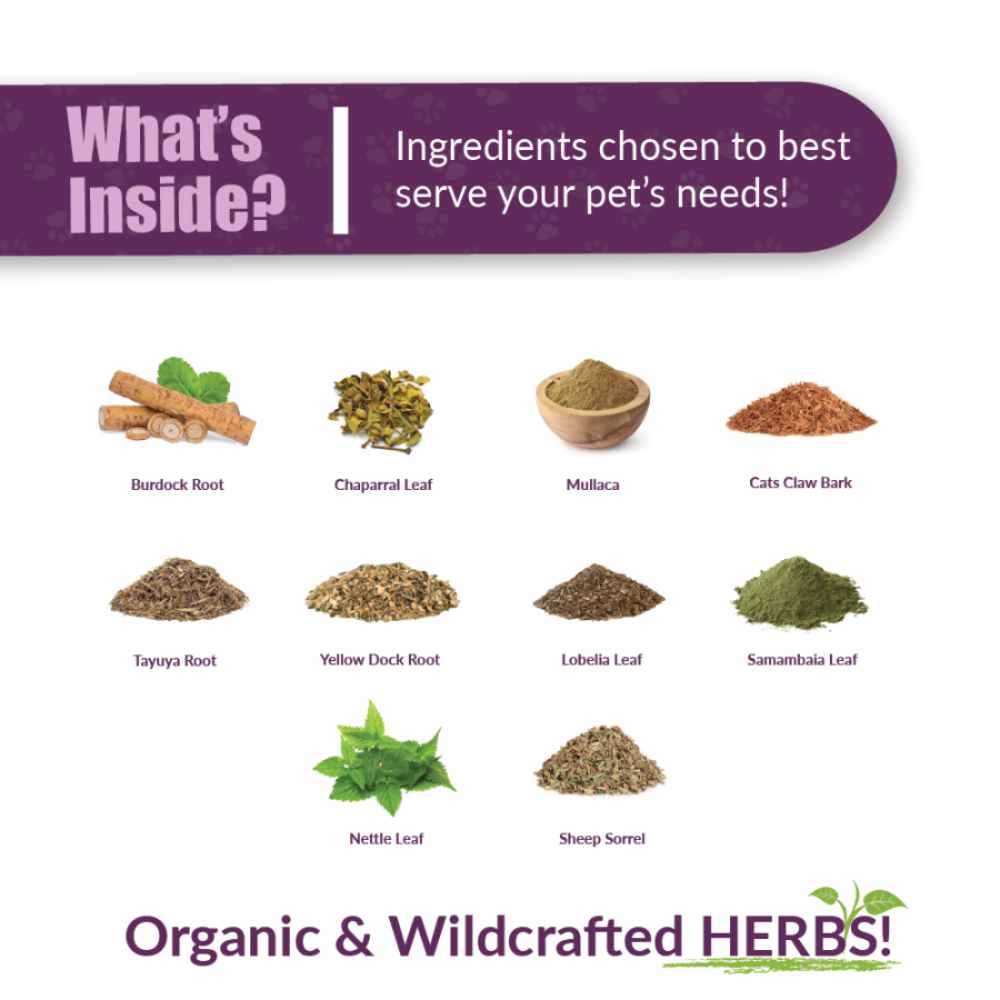 “Proprietary Blend of (Mullaca 2,3, Tayuya Root 2,3, Yellow Dock Root 1,3,4, Samambaia Leaf 2,3) 61 mg”- Burdock Root 1,3,4………………………..………..45 mg
